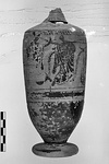 | Description: | Repaired from many fragments. Neck does not join. Surface badly worn. Three maenads. Ivy spray in background. Above, a double dotted line. On shoulder, palmettes. Flesh white, mostly without black ground. Cf. P 10326. | |