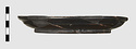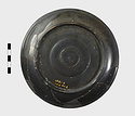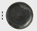 | Description: | Fragments missing from wall and rim. A very flat plate on a low base ring; rim slopes inward and is double grooved. On the floor are two concentric bands of impressed ovules between lines. On the underside, two raised concentric circles. Black glaze all over. | |