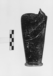 | Description: | Upper part broken away and part of wall. Projecting foot and tall straight side wall, gradually increasing upward. Band handle from shoulder. Dull black glaze. | |