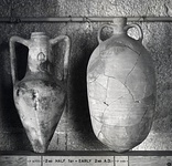 | Description: | Bottom missing and fragments from walls. Elongated body, rounding toward bottom; shoulder rounded; short narrow neck with funnel mouth; small handles, below mouth to shoulder. Clay pink to buff. | |