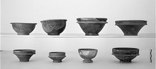 Description:   About half preserved; restored in plaster. A small deep bowl with carinated rim; low ring foot.