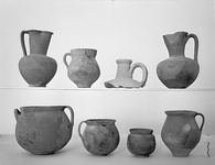 | Description: | About half preserved with one vertical band handle, lip to shoulder, and one horizontal rolled handle on the shoulder. Round bodied pot, the walls narrowing slightly to vertical rim. Groove around wall at line of attachment of horizontal handle. Micaceous red clay, slightly blackened. Cf. Agora XXXIII, no. 606. | |