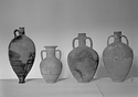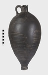 | Description: | Mouth and considerable fragments of body missing; restored in plaster. Underside of foot cup-like with raised point at center. At base of handle a graffito: <graphic> | |