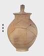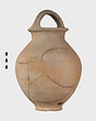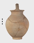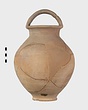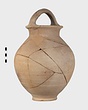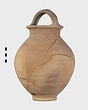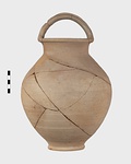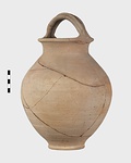 | Description: | A few fragments of body missing. Low neck; rolled lip, projecting; ridged basket handle. Buff clay. Light buff slip. | |