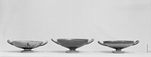 | Description: | Mended from many pieces; small gaps on lip and body. Glaze fired red over most of interior and upper part of exterior (sharp color division); below, greenish. Worn away from one handle. Inside of handles reserved, also resting surface and top of short stem underneath. Added red on short stem. | |