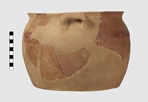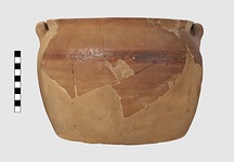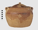 | Description: | Base, lower part of pot, and knob of lid are missing. Restored in plaster. Deep jar with open mouth, inside ledge for lid, vertical loop handles set close against rim; domed lid. Brown glaze on inside; on inside of rim; in a band around the shoulder and in broad bands on top of lid. Cf. Agora XII, nos. 1534 and 1555. Addenda May 2015: Ann Steiner suggests that the jar should be compared with Agora XII, nos. 1534 and 1536, not no. 1555. | |