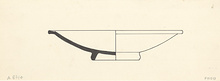 | Description: | Small plate. Low base ring; projecting rim, offset. Very uneven red-brown to black glaze on interior, exterior unglazed, except at rim. Stacking circle off center. | |