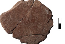 | Description: | Floor piece and four non-joining fragments from lower part of rim preserved; no piece of rim proper remains. Flat floor; false base ring formed by lower edge of vertical rounded rim. On floor piece, two concentric circles and stamp in center, probably are detectable. Another concentric circle at outer edge of floor on fragment b). Glaze badly flaked, especially inside. Samian A. | |
