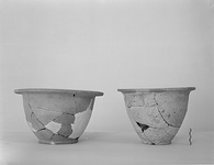 | Description: | Few pieces missing. Shape similar to P 11883 (Χ 918); narrower in proportion to its height. Two shallow grooves on top of rim. Soft pinkish-gray clay with brown bits in it. Cream-colored slip. | |