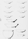 | Description: | One fragment preserves most of the bottom and the complete profile; two rim fragments do not join. Ring foot and shallow body, pressed inward from four sides so as to be square at its plain rim. Traces of rolled horizontal handles with out-turned ends; a shallow round depression like that of a fishplate at the center of the floor. Attic clay; dull black glaze; brownish where thin and steaky. | |
