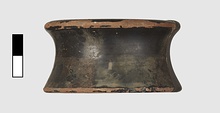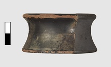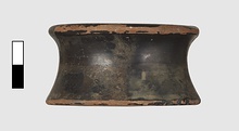 | Description: | About one-half remains. Concave side profile. Dull black glaze over all. Cf. Agora XII, no. 936. | |