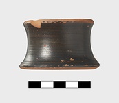 | Description: | Intact except for chips. Flat bottom, concave sides, plain lip. Good black glaze, except on bottom and on top of lip. | |