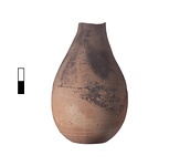 | Description: | Mouth missing; otherwise intact. Small flat bottom; bottle-shaped. Surface blackened on upper part. | |