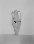 | Description: | Fragments of lip, handle, body and base missing. Conical neck and shoulder in one piece; body tapers to pointed bottom. Faint stamp, partly broken, on one handle: a device. Buff clay and slip. Dull red smeared around top of handles. Mastic inside. Other stamps from this well are SS 8210 (Ψ 699): ΠΕ in wreath; and SS 8211 (Ψ 700): alpha. | |