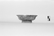 Description:   About half the rim and wall missing, and chips. Bowl without-curved rim, similar in shape to P 13678 (ΛΛ 1313), but smaller and with a less carefully made foot.