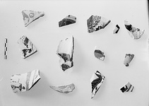 | Description: | Broken all around. From a closed pot, possibly an amphora. A horse and rider right. Preserved are one hand and part of the spear of the rider and part of the neck of the horse. | |