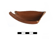 | Description: | A single fragment preserves complete profile. Flat bottom; low flaring wall; inturned rim with slight keel. Brownish clay. Good red glaze inside and out. Samian A. | |