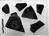 | Description: | From the shoulder of a large vase, glazed inside with thin black. No relief contours; the outline of the eye and the breast muscle drawn with relief lines. The eye full face, the angles slightly open; the iris approaching the inner corner. Circle of the Kleophrades painter? Cf. Watzinger (1924), pl. 18, nos. 14, 15. | |
