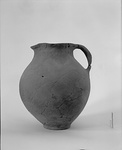 | Description: | Mended from many fragments; much of body missing; restored in plaster. Low ring foot; roundish body; broad trefoil mouth; single vertical handle. The buff slip on the surface, inside and out, has been almost entirely worn off, exposing the rather coarse reddish-brown clay. Many of the tiny stones in the clay have fallen out, leaving pock marks. Handmade. | |