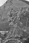 Description:   Preserved to the lower edge of the rim band. In the medallion a rosette, surrounded by a scraped line and a ring of small leaves. The moulded scene repeated three times; large draped female figure, right, hurling a corpse down on a nude figure which attacks, using an implement with a handle-knob at one end, with an eagle or a vulture perched on the other [Zeus, Ganymede and Eagle]. Winged figures in the field.