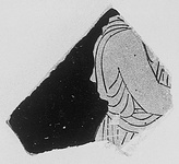 | Description: | Fragment from medallion, preserving part of the side, from shoulder to below waist, of a female figure standing right, wearing a bloused chiton and extending her right arm. Outside, trace of a reserved ground line. Good glaze; careful work; relief contour for the back of the figure below the waist, only. | |