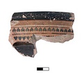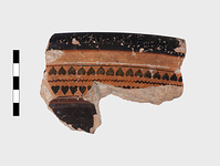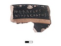| Description: | Fragment from rim of a calyx krater, with an ivy wreath around its outside. Incised on inside: <graphic> | |