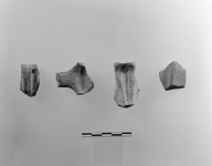 | Description: | From a small straight-sided pot, a long narrow handle, horizontally pierced and attached at rim. Brown clay, mostly fired gray; traces of red slip inside and out. | |