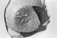 | Description: | A single fragment preserves complete circle of foot and lower part of side walls of an open bowl or cup with slightly flaring sides. At center of floor, a foot stamp: <graphic> Rather flaky light brownish-buff clay. Red glaze. Sigillata Bowl. Cf. Iliffe I (1936), p. 35. | |