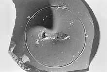 | Description: | Bottom of Western Sigillata bowl with ring foot. Groove-ring around plantaform stamp at center of floor: <graphic> Light buff clay, dark red glaze. Cf. Iliffe I (1936), p. 29. | |