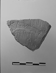 | Description: | Broken all around, but all original ostrakon surfaces apparently preserved. Fragment of side wall of coarse pot of pinkish-buff clay. Inscribed on outside, lengthwise to pot: <graphic> Cf. Hesperia Suppl. 5 (1941), p. 1441, no. 29. | |