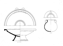 | Description: | One handle, part of the other handle, fragments of body and lip missing; restored in plaster. Spherical body, somewhat flattened toward bottom. No base. Broad, low neck, flaring toward top; slightly thickened lip, flat on top and sloping to outside. Two vertical handles from lip to just below neck. Typical coarse cooking pot fabric; dull red slip; blackened by fire in lower half. ADDENDA Possibly a Palestinian import? See Crowfoot, et al, Samaria-Sebaste III, p. 130, fig. 12, nos. 11-12 (period VIII, 7th.-6th. c. BC) and p. 229, fig. 41, no. 1 (Hellenistic). Our piece by shape possibly between the two dates (GRE). | |