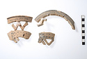 | Description: | Joins P 26027. Rim fragment from openwork kalathos. Decorated with false spiral and bars on rim. Glazed inside. Developed style. Cf. an example from the Isis grave, CVA Athens, I, pl. 6:10. ADDENDA Joins P 26027 and many other sherds from pyre H 16:6. Profile preserved to just above base. | |