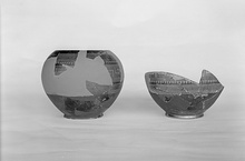 | Description: | [Originally identified as amphora fragment.] Rim fragment. Zone of maeander pattern above tooth pattern and zigzag. Black below. Lustrous paint. Developed style. ADDENDA Many fragments from pyre H 16:6 and from area of house (tins). Profile probably complete. Partially restored in plaster. | |