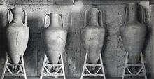 | Description: | Most of one handle missing, and small pieces from the wall; restored in plaster. Pointed amphora with tall neck, rolled lip, angular shoulder, and large button toe, handles from below rim to near edge of shoulder. Clay red to brownish. | |