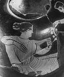 | Description: | Full height preserved; neck missing, and body fragmentary. A draped woman, seated, right, in a chair, to whom a nude winged youth presents a wreath. To right below, Eros. Remains of band of eggs under figure. | |