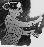 | Description: | Six joining pieces preserve mouth, part of neck and about half of shoulder. Upper part preserved of standing draped woman, right, arms extended, holding uncertain objects in her hands. Added white for fillet and for object in right hand. ADDENDA Woman may be spinning. R. Sutton 26/IX/75. | |