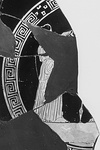 | Description: | Ten joining fragments preserve part of rim and about one-third of body. Medallion inside bordered by crosses and maeander. Preserved within it: standing draped woman, right, with raised arm; end of downturned spear; and toes of facing figure. Outside of cup: palmettes and scrolls under and to side handles. On one side, standing draped figure, left, preserved. On the other, lower parts of two draped figures, right, with slanting shaft of spear between them. Added color, probably white, for head fillets on both inside and outside. | |