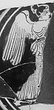 | Description: | Five joining fragments from upper and lower wall. In medallion, bordered by plain bands, only figure at left preserved: draped winged Nike, right. Outside: part of floral ornament under one handle, and lower parts of three nude male figures, one of whom holds a spear, preserved. Stem was enclosed in a triangle of incised lines scratched through the glaze, of which only one side and part of another preserved. | |