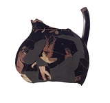 | Description: | Many fragments mended to eight. a) Most of body, base of neck and lower part of handle preserved. Wreath in thinned clay paint around neck. On body, on a ground line of egg pattern, four figures are partially preserved, from left: winged female figure, right, painted white, holding wreath of thinned clay paint in one hand; draped figure, right, holding lyre and plectrum, wearing crown of thinned clay paint; hovering winged figure, left, painted white, with crown in one hand, phiale in other; standing draped spectator, left. b) Part of trefoil mouth and upper end of handle. c) Small fragment of mouth. d) Fragment with part of ground line of egg pattern and edge of drapery. e) and f) Fragments with edges of ground line. g) Fragment of ring foot and lower body. h) Small wall fragment, plain. | |