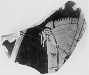 | Description: | Two joining fragments from wall, just below shoulder of loutrophoros; swelling for handle attachment on line of break near top. Heads of a pair of horses, left. Torch(?) in front. | |