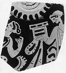 | Description: | Single fragment from a lekanis lid; knob handle broken off from center. Parts of two draped women running right, the first carrying a box with hanging drapery. Cf. P 18330. | |