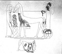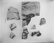| Description: | Four main fragments and numerous smaller: a) Preserves the nearly vertical high ring foot and bottom of the body. On the foot, narrow zone filled with running dog. At junction of body and foot, a wide glazed zone; above, bands; above that, a zone of step-pattern and still higher a zone with loops. In at least three places where carelessly drawn bands have run together, the potter separated them by incision; and at one place at the junction of body and foot he made a scraped band by incising. b) Part of the wall, with part of a large horse left; preserved are the chest, the beginning of the front legs and the end of the nose. Incision for interior details of horse. Large lozenge-star underneath and dotted guilloche in front. c) Wall fragment, the front lower legs and one back foot of a large horse walking right. In the field, zigzags and a dot rosette. d) Wall fragment, the wheel and part of the body of a chariot going right; an unidentified object behind. Remains of decoration on the smaller wall fragments: e) Part of another chariot? f) Part of a horse's tail; running-dog in field. g) and h) Unidentified bits with incision. i), j), k), l), m) Fragments with loop ornament. Pink Attic clay. Dull reddish-brown glaze. | |