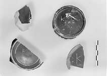 | Description: | Chips missing from rim. Ring foot and concave wall with plain rim. Incised on the bottom: Κ Good black glaze over all. Cf. Agora XII, no. 935. | |