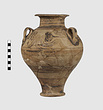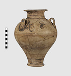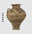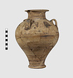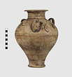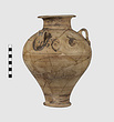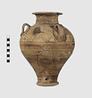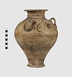 | Description: | A few small fragments of body missing. On shoulder, in handle zone, ivy leaf and trefoil spiral design (cf. Blegen (1937), Prosymna, no. 412: I, p. 403; II, fig. 106). Glaze bands on lower body; the glaze much worn and peeled, the surface of the clay greenish. Ring foot. Lip flat on top. | |