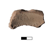 | Description: | From the ring foot of a semi-glazed krater. Incised on inner face of foot, retrograde: <graphic> | |