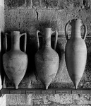 | Description: | Complete save minor chips; one handle broken and mended. Tall neck with rolled rim; horned handles, shoulder to below rim. Slender elongated eggy body, tapering to pointed toe. Buff to pinkish clay; light buff slip. | |