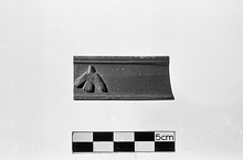 | Description: | Fragment of vertical rim from a large Western Sigillata plate. In applied relief, a small female mask, hanging from a curving band. Fine light red clay; good glaze. ADDENDA Two fragments b) and c) added from sherds, the larger mended from three, giving part of the rim and the flat floor, and the beginning of the ring foot. On the floor, incised circles, the outer pair framing a rouletted band. At the center, the end of a plantaform stamp, no letters. On the rim, in applied relief: b) a bird flying upwards; c) the end of a volute scroll and another bird. | |