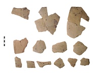 | Description: | Twelve fragments. a) Mended from four pieces. Shoulder fragment, with part of the head of a bearded man, right: back of head, eye and part of red beard preserved. b) Mended from two pieces. Fragment from junction of shoulder and neck, with the attachment of one handle on the shoulder. c) Mended from four pieces. Fragment from lower body; vegetable ornament. According to the mender, the following belong to P 18524: d) Wall fragment with noses and chins of facing heads of frr. a) and b). e) Wall fragment with vegetable ornament. f) Neck fragment with vegetable ornament. g), h), i) j) Lower body with rays or triple horizontal lines above rays. k) Wall fragment with band. l) Neck(?) fragment with zigzags and vegetable ornament. m), n) Two additional fragments, believed to be from lower body of P 18525 added from Well 3 (tin 72), nb. 1135. | |