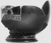 | Description: | The echinus foot and about half the lower body preserved. Low vertical collar or stem between foot and body. Both lower corners of the figured panel remain, bordered by egg and dot below and by plain bands at the sides. At the right, the legs of a child, left. Excellent glaze outside; thin scraped line at top and bottom of collar. Unglazed beneath foot. Inside, glaze wash. Partial relief contour. | |