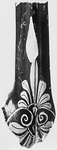 | Description: | Lower part of handle preserved, triangular in section; the two outer faces concave, meeting to form a heavy central spine. On the lower part, and at the attachment, a double palmette with spirals between. Excellent glaze; partial relief contour. | |